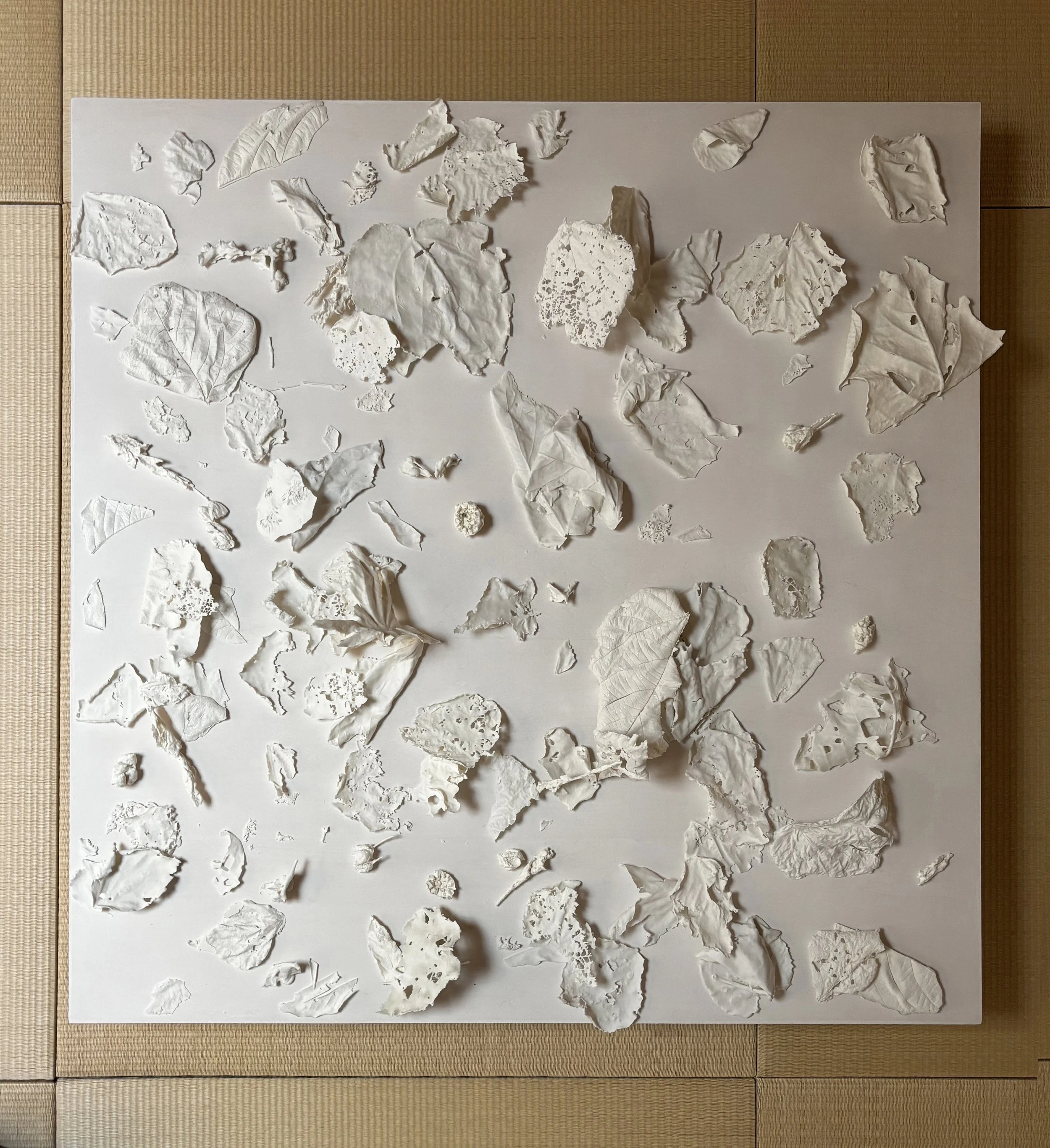 Collection, porcelain on plywood on tatami mat, 40 x 40 inches, 2025